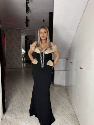 Rochie neagra sirena cu umeri bej
