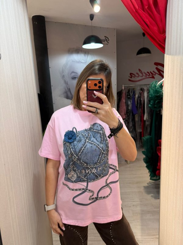 Tricou roz cu poseta