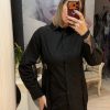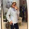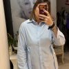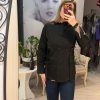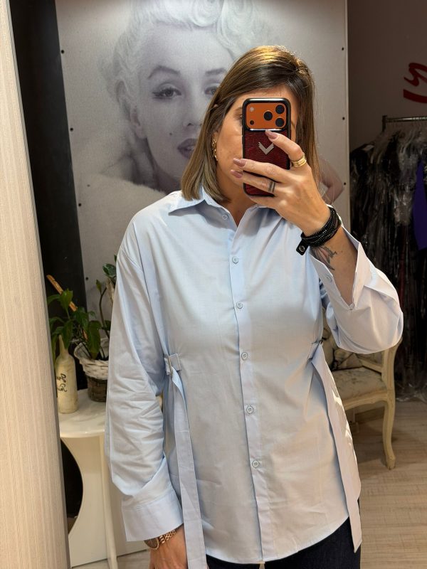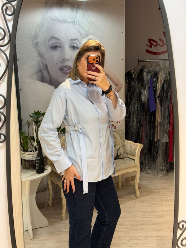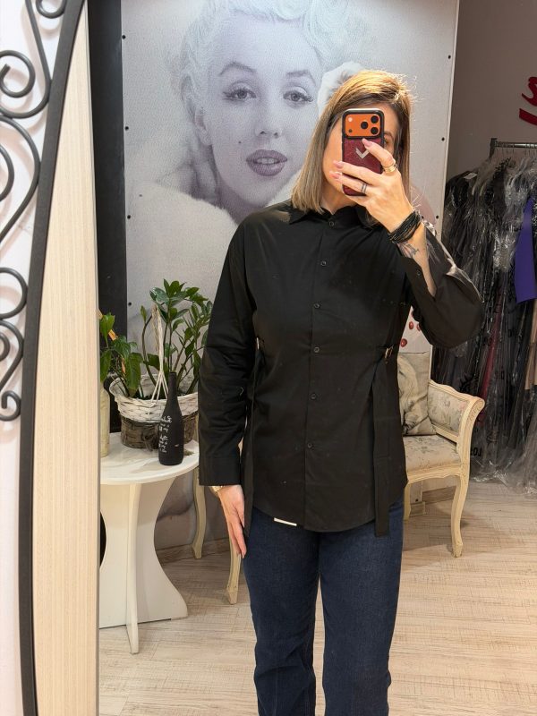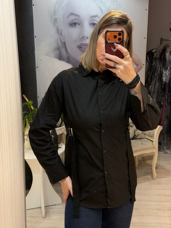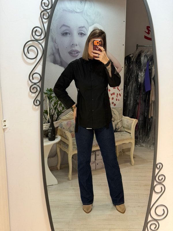 Camasa este dintr-un material foarte elastic,usor mai lunga,cu decupaje pe laretal.iar cordoanele din talie permit ajustare pe laterale.