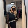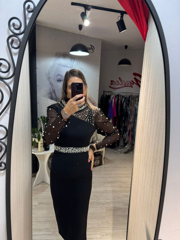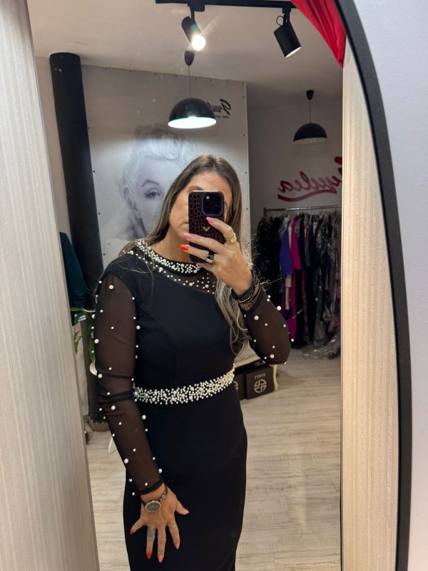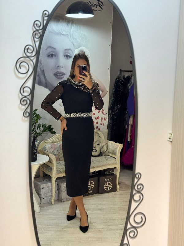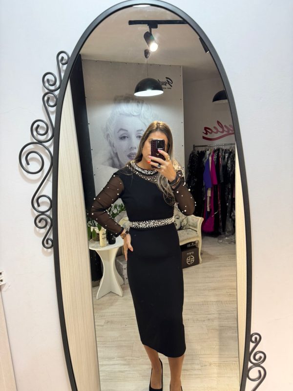 Rochie neagra cu maneci lungi si perle